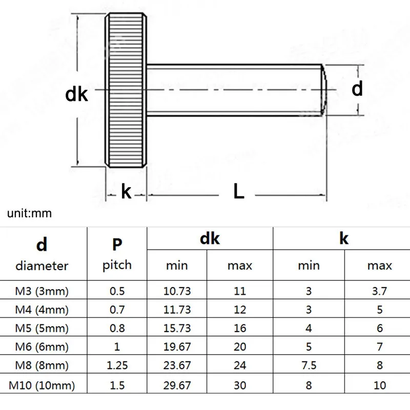 Диаметр резьбы:3 мм (м3)/4 мм (M4) / 5 мм (M5)/6 мм (M6)/8 мм (M8)/10 мм (M10)Шаг резьбы:0,5 мм (M3)/0,7 мм (M4) /0,8 мм (M5)/1,0 мм (M6)1,25 мм (M8)/1,5 мм (M10)Дисплей продукта