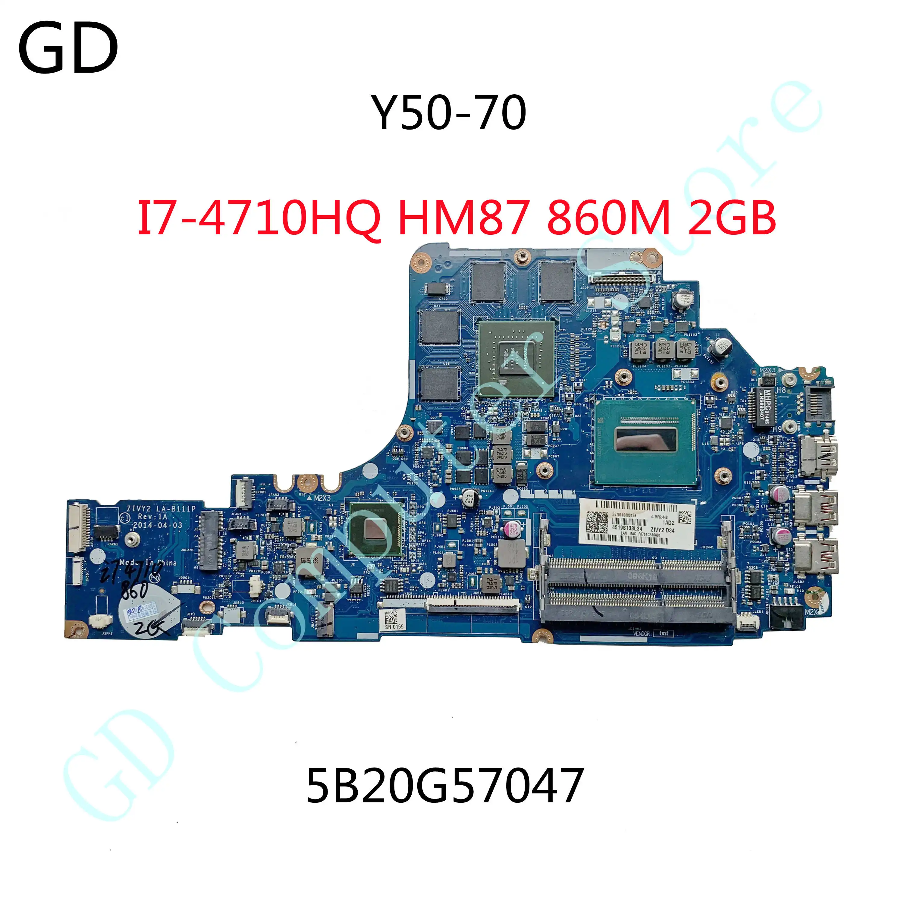 GD оригинальная материнская плата для ноутбука Lenovo Ideapad Y50-70 5B20G57047 ZIVY2 LA-B111P SR1PX I7-4710HQ HM87 860M 2 Гб