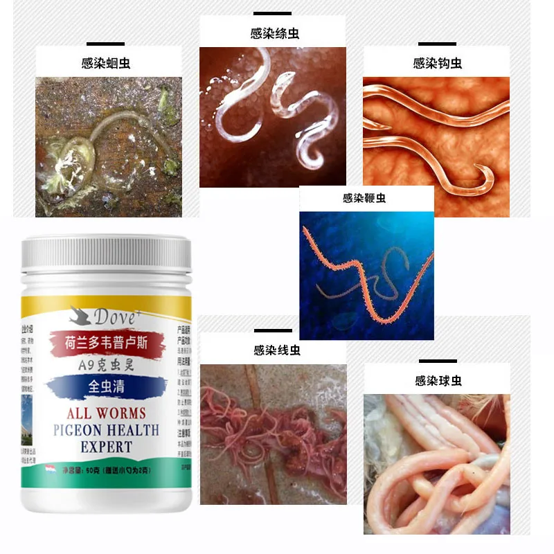 2. Очистка голубя: 1 Совок (2 грамма), смешанный с водой и 1 литр в течение трех дней подряд)