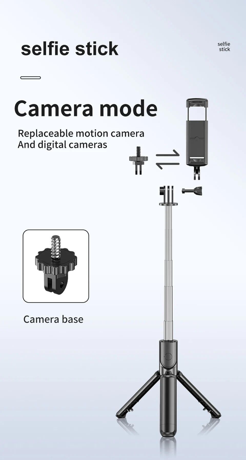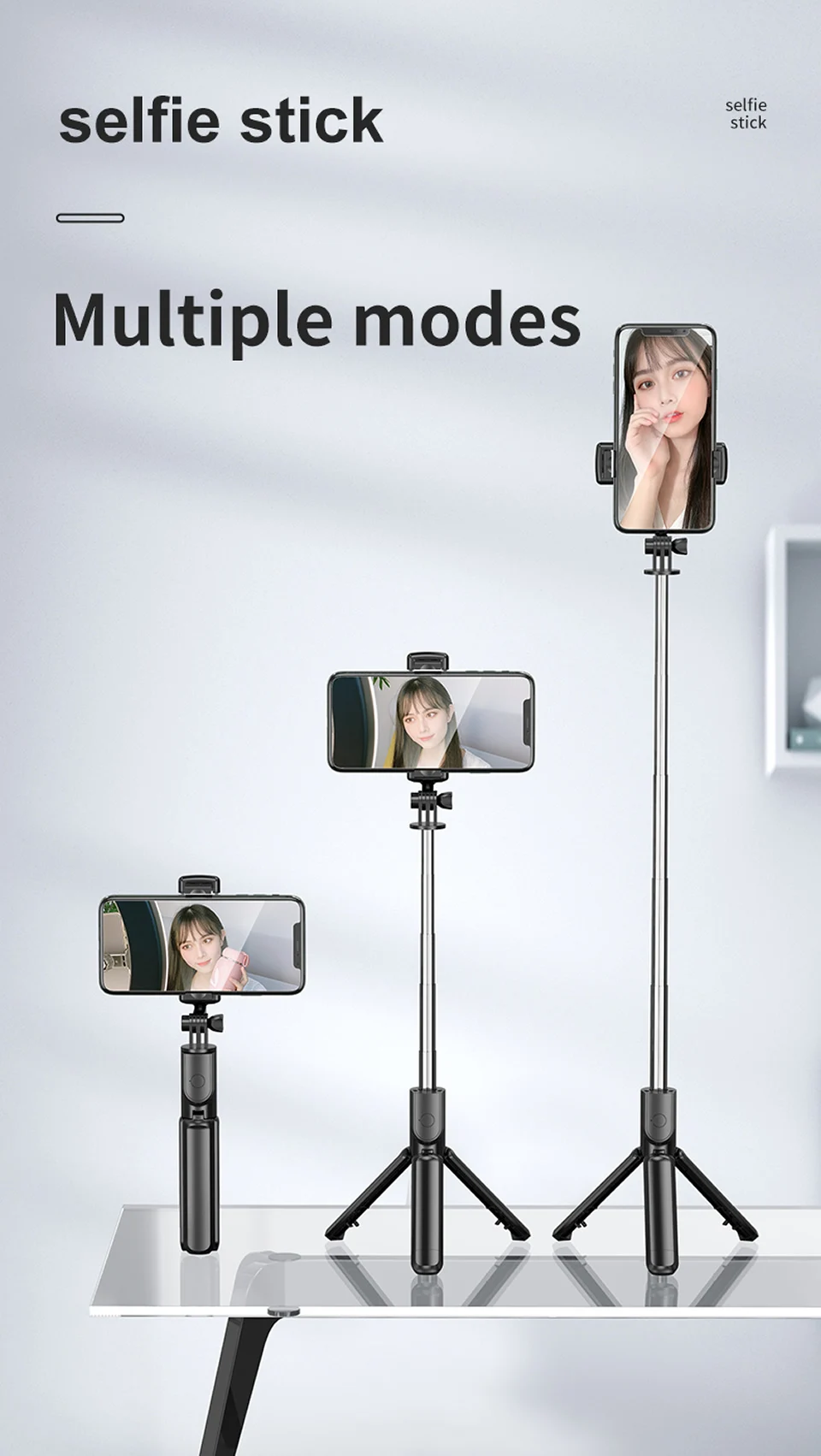 Компактная селфи-палка «Три в одном» с беспроводным пультом дистанционного управления и встроенным штативом, Диапазон беспроводного подключения может составлять до 10 метров. Новый опыт отлично подходит для селфи, групповых фотографий, времени лица, записи в жизнь, видеосъемки, социальной жизни и т. Д.