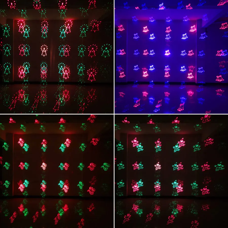 Эффекты на светильник:Движущиеся лазерные линии RGB сканирование луча и несколько сотен движущихся рождественских анимационных шаблонов для Хэллоуина,Пожалуйста, просмотрите фотографии или видео с эффектом нашего продукта;Примечание: Лазерные линии требуют дыма!
