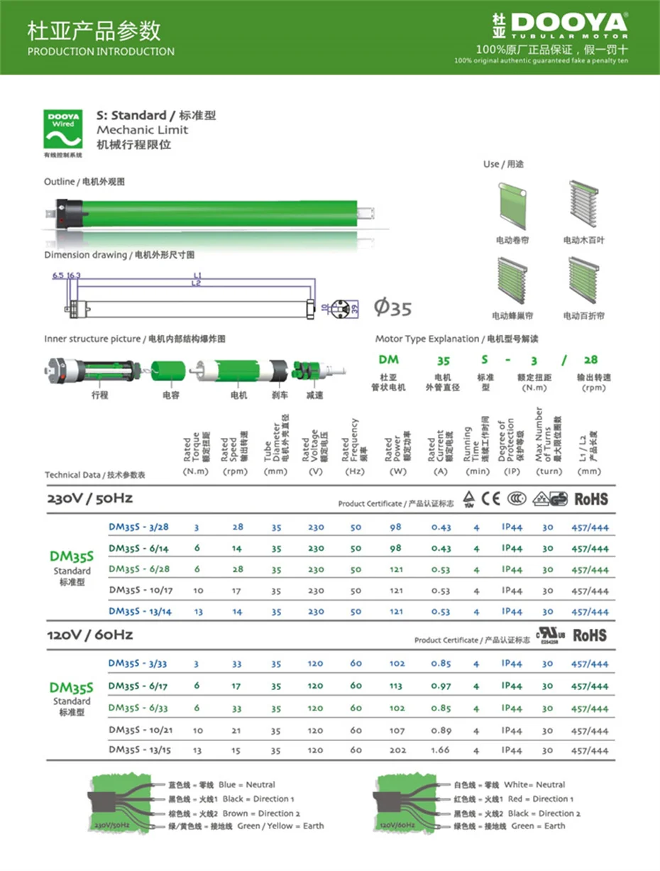 1. DM35R 10/17 трубчатый двигатель со встроенным rf433 moudel, и сейчасЭто новая версия со встроенной сигнальной антенной, Внешний двигатель, в настоящее время нет антенныПожалуйста, примите это во внимание. Но DM35S 10/17 составляет 4 провода двигателя и без встроенный rf433 moudel