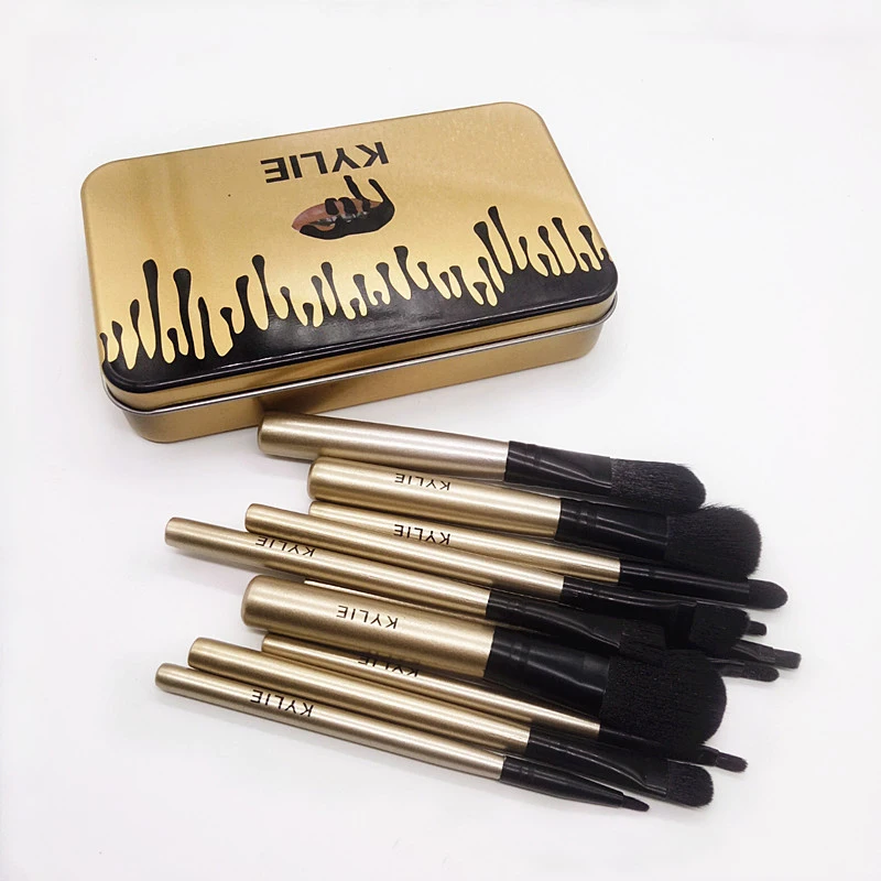 HUDA BEAUTY 12 шт. набор кистей для макияжа с железной коробкой Румяна Пудра основа для теней для век блендер подводка для губ Косметика Инструменты для красоты