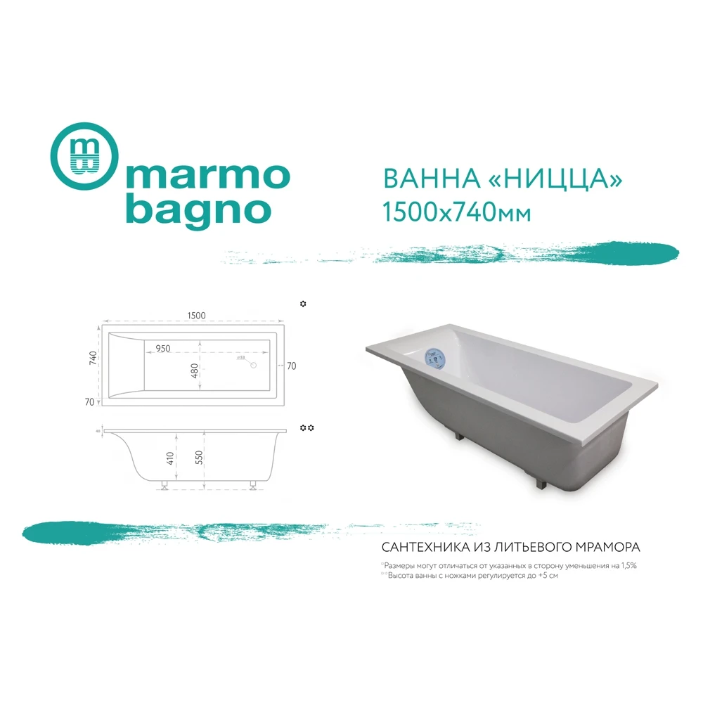 Ванна из литьевого мрамора Marmo Bagno Ницца 150х74