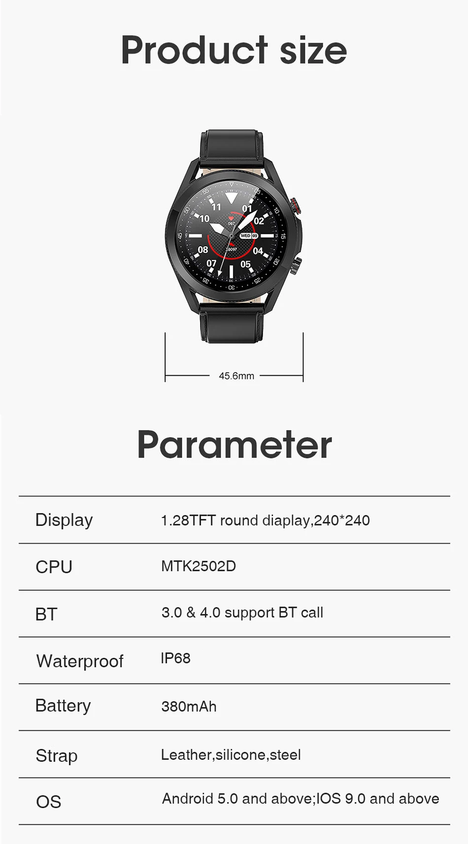 Размер 45*45*4*11,3 мм ремни открытая длина 119,6 + 93,2