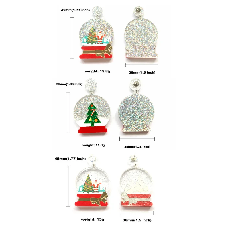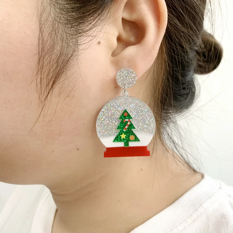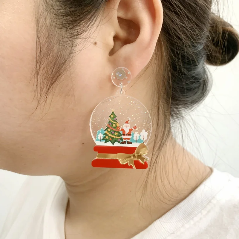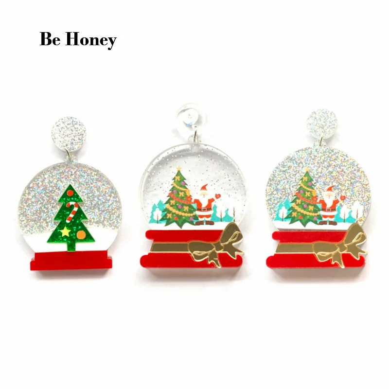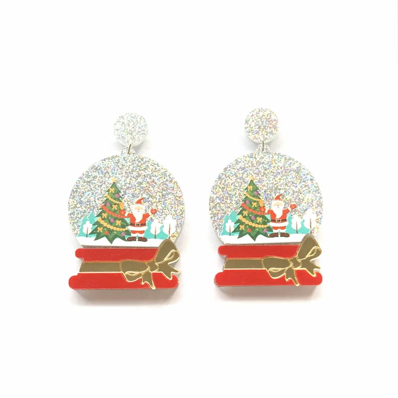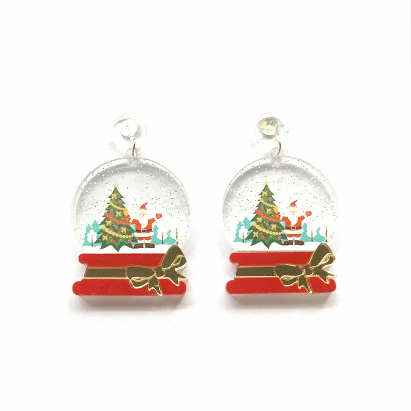 Милые рождественские праздничные блестящие украшения, Рождественский хрустальный шар и Снежный шар Санты с бантом, акриловые серьги-гвоздики для женщин