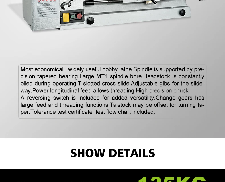 Наиболее экономичный, широко полезный токарный станок для хобби. Шпиндель поддерживается прецизионным коническим подшипником.