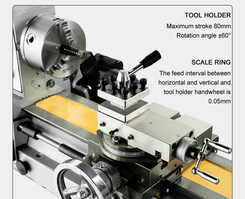 Регулируемые гибы для скольжения. Продольная подача позволяет нарезку. Высокоточный Зажимной патрон.