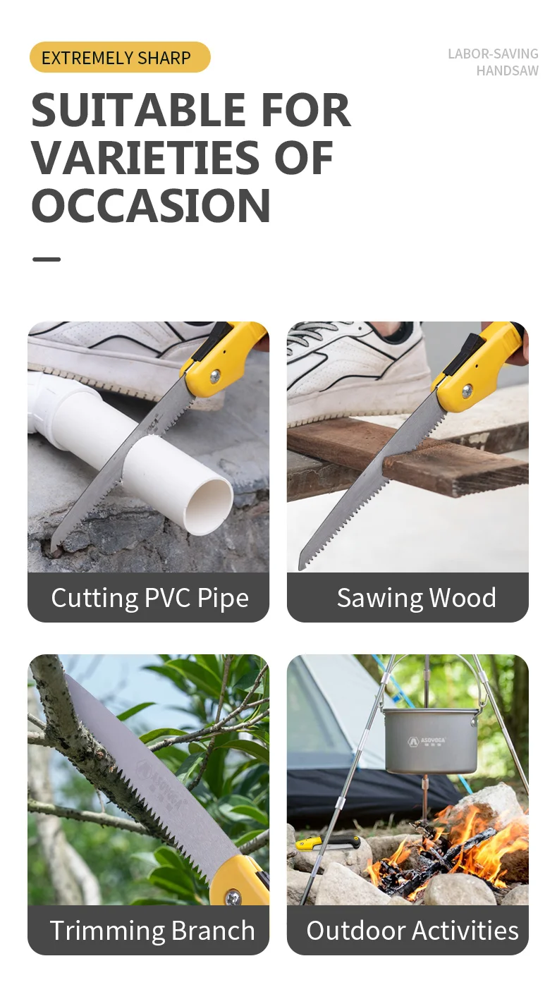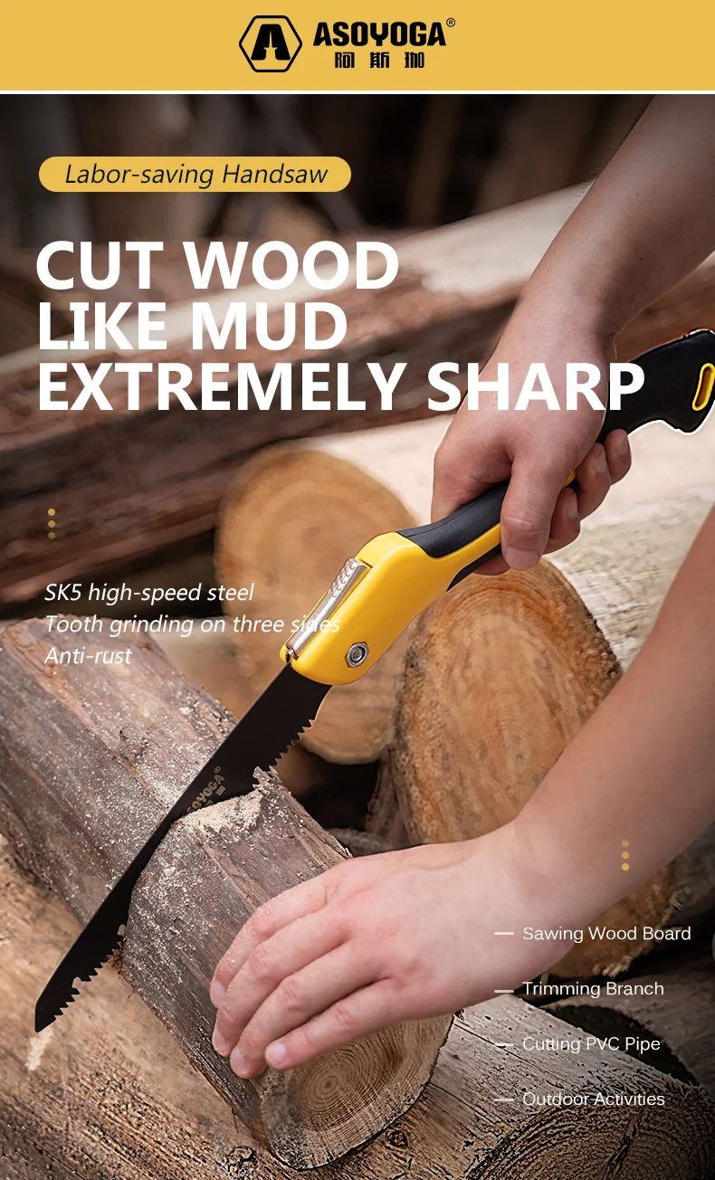 Название: ASOYOGA Складная пилаРазмер: 5 размеров, как на картинкеМатериал: ABS (ручка),Sk5 легированная сталь (пила)Использование: распиловка деревянных досок, обрезки веток, резки ПВХ труб, уличные ativities и т. Д. Подходит для различных случаевПреимущества: Плавная резка, быстрое удаление чипов, Ωформа дизайна, это может уменьшить шумПосылка включает в себя: 1 Складная пила (Sned 1 пара перчаток и 1 точилка для ножей)