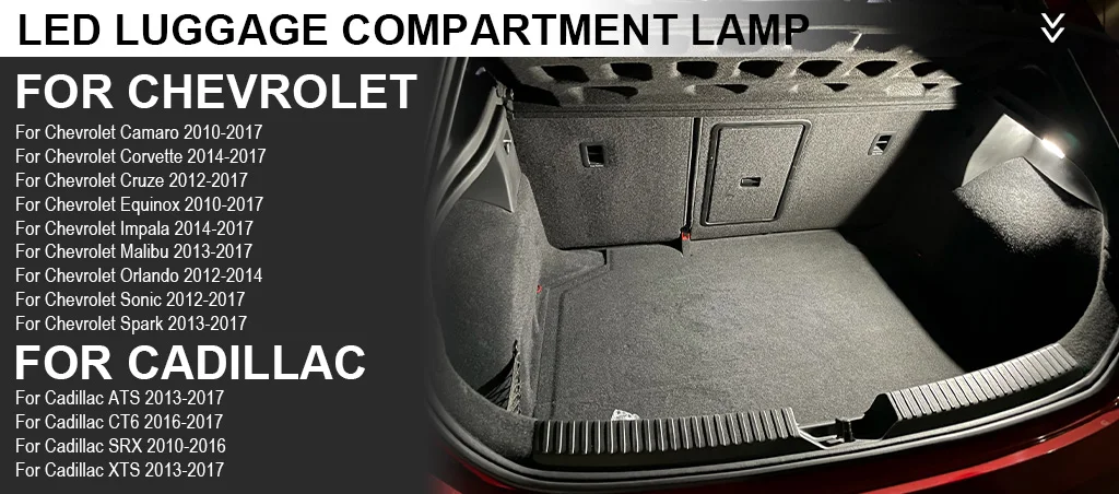 LED Interior Boot Trunk Luggage Light Lamp For Chevy Camaro Corvette Cruze Impala Malibu Sonic Spark Cadillac ATS CT6 SRX XTS