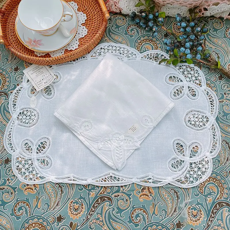 Новый кружевной хлопковый коврик с вышивкой, коврик для стола, салфетка, чашка, тарелка, чайные горки, Рождественская салфетка под приборы, кухонные принадлежности