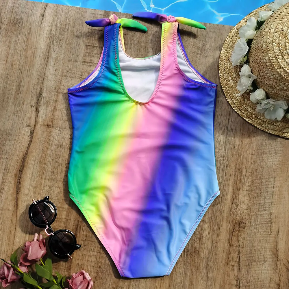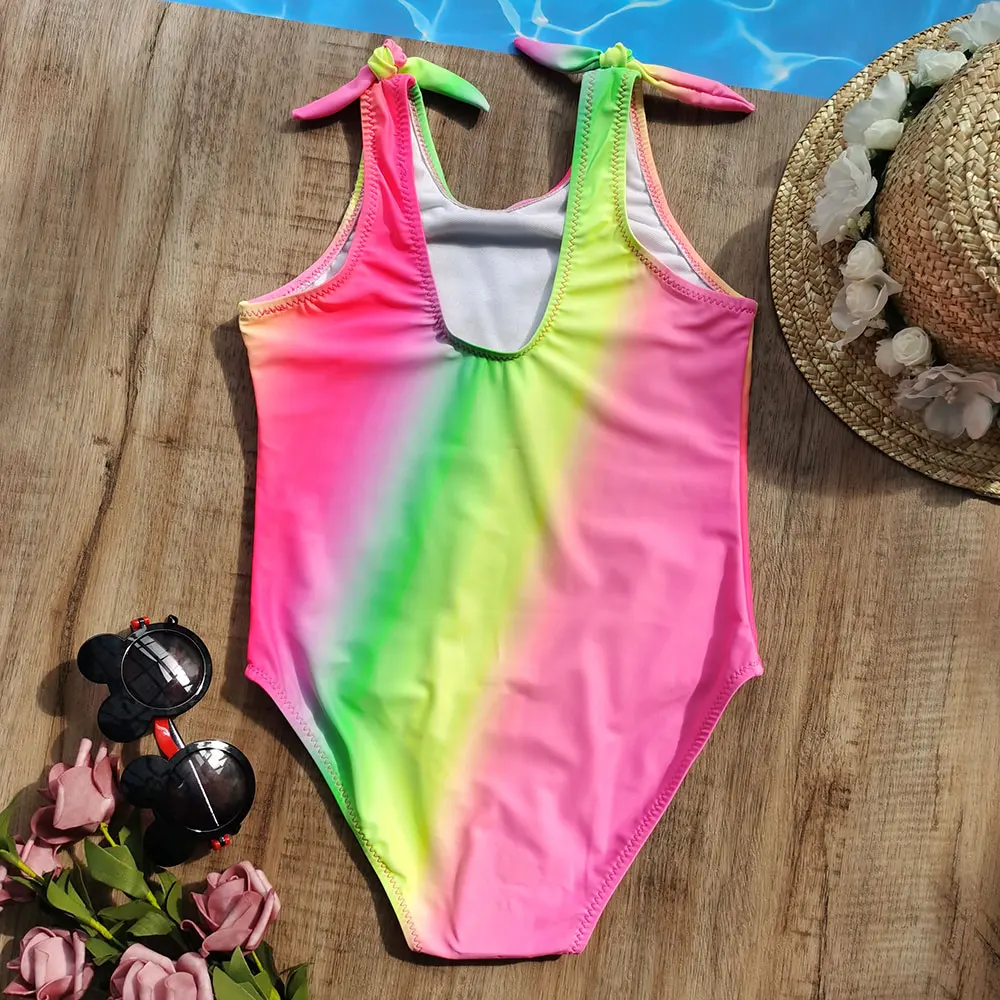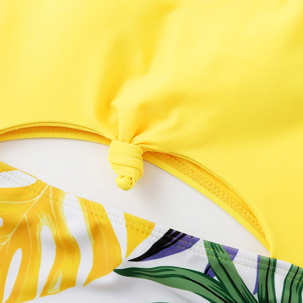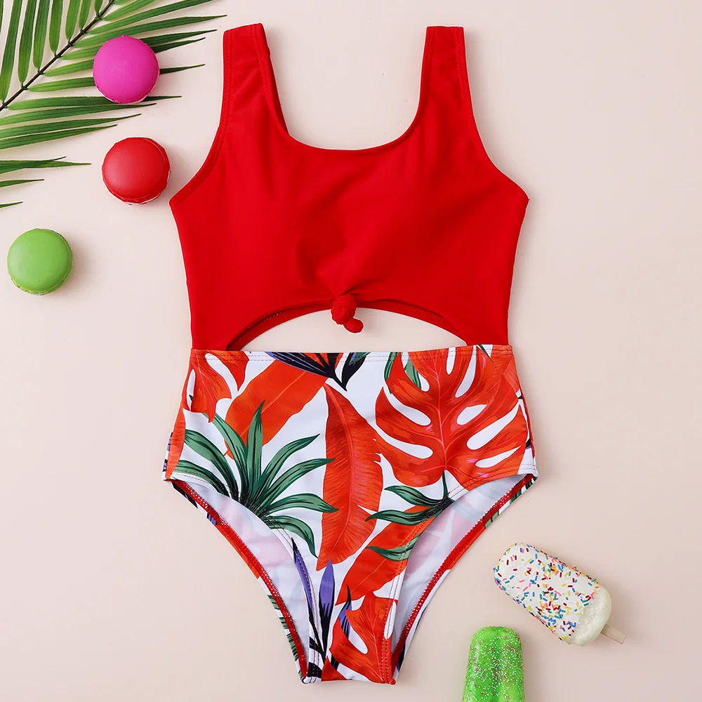 Тропический купальный костюм для девочек, Цельный Детский купальный костюм с вырезом и бантиком для девочек, купальный костюм монокини, От 7 до 14 лет, купальный костюм