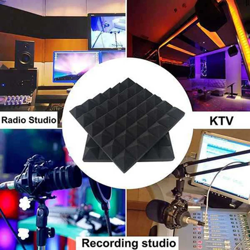 24 шт. акустических пенопластовых панелей, шумоподавляющие стеновые панели, огнестойкая и Звукоизоляционная Пирамида студийная пена, для студий и т. д.