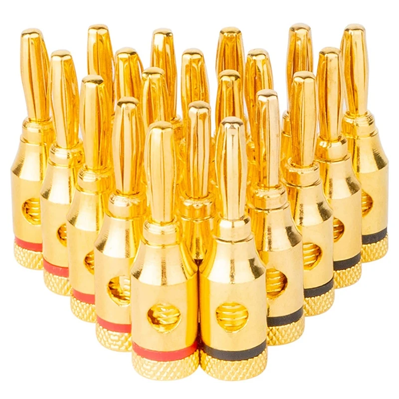 Позолоченная головка типа банана с открытым винтом для провода динамика, домашнего кинотеатра, настенных пластин и многого другого, 10 красных + 10 черных