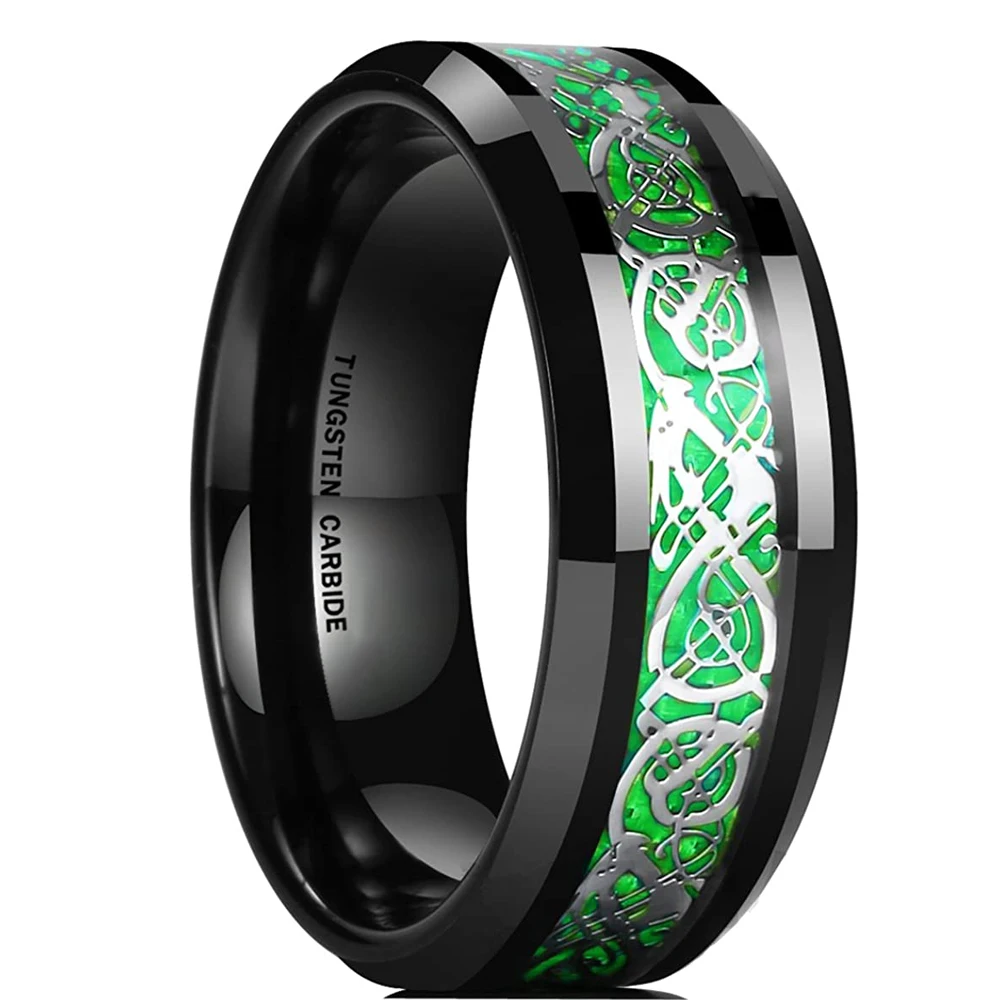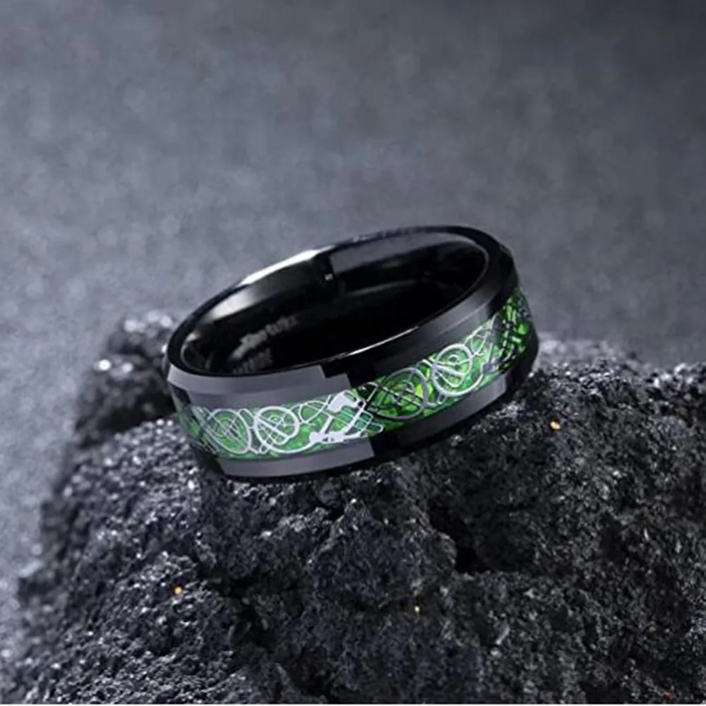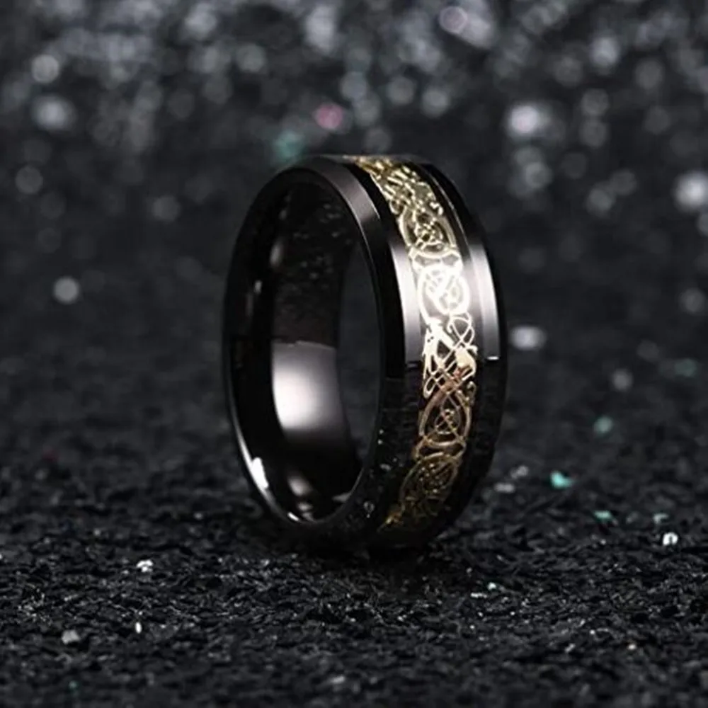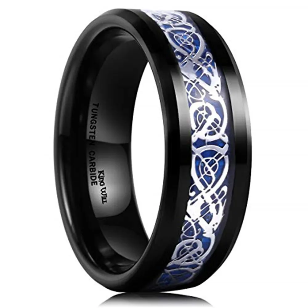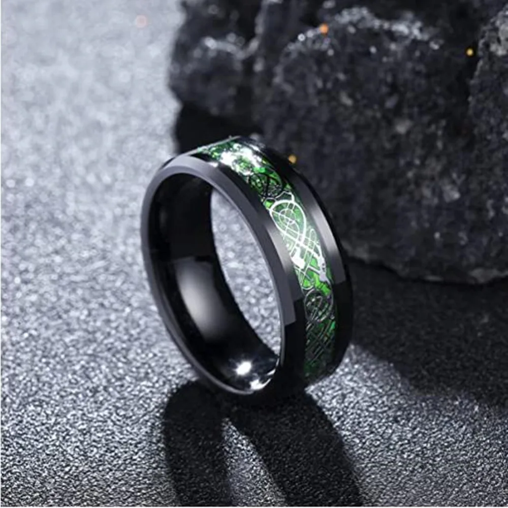 Show moreClassic 8mm Men's Stainless Steel Dragon Ring Inlay Silver Color Blue Black Carbon Fiber Ring For Men Engagement Wedding Band