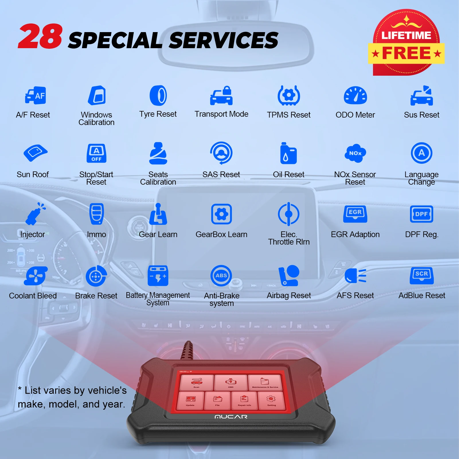 MUCAR CS90 все автомобили 28 услуга сброса срок службы бесплатно