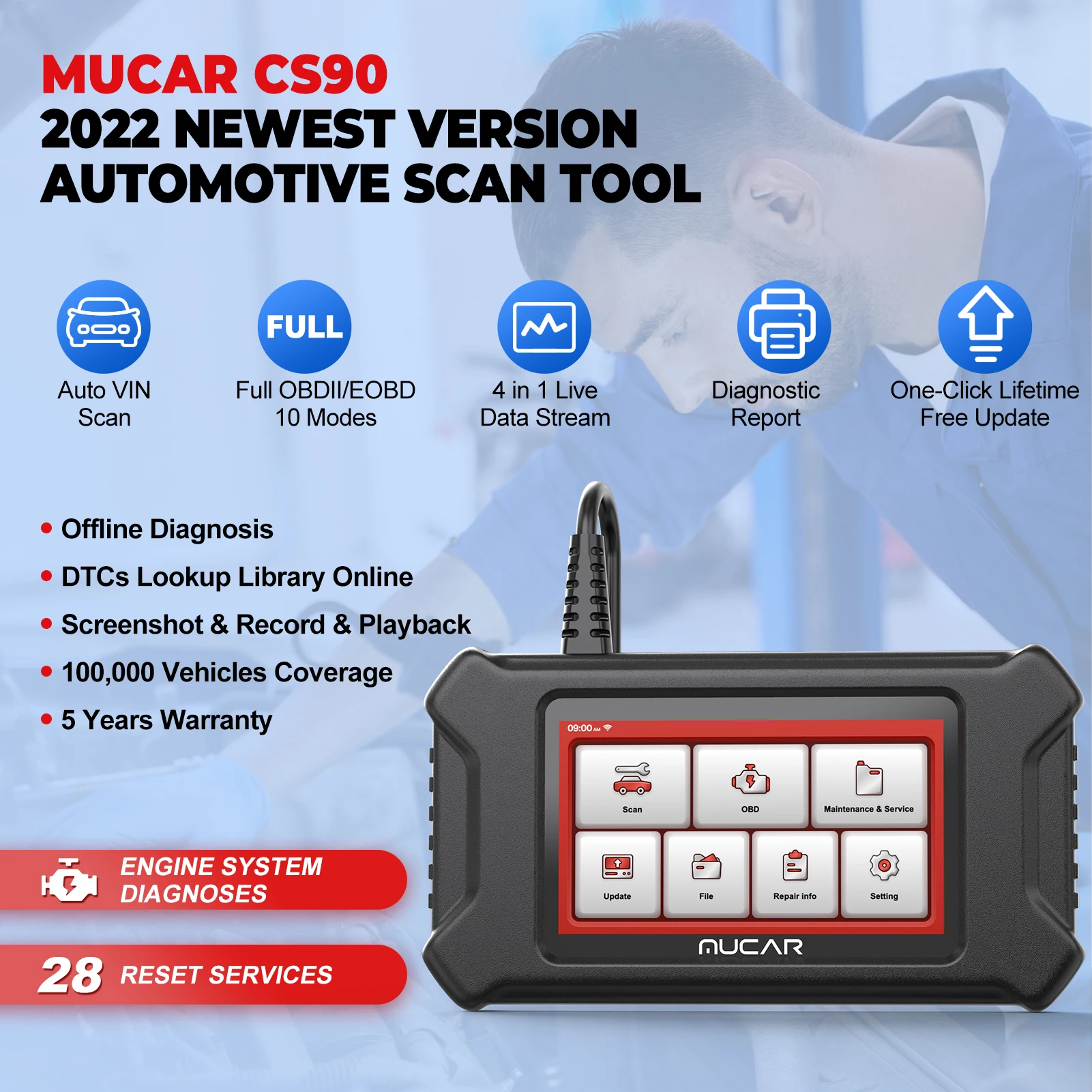 Диагностический сканер MUCAR CS90 с 28 сервисами сброса для использования,Не все 28 наборов работает во всех автомобилях