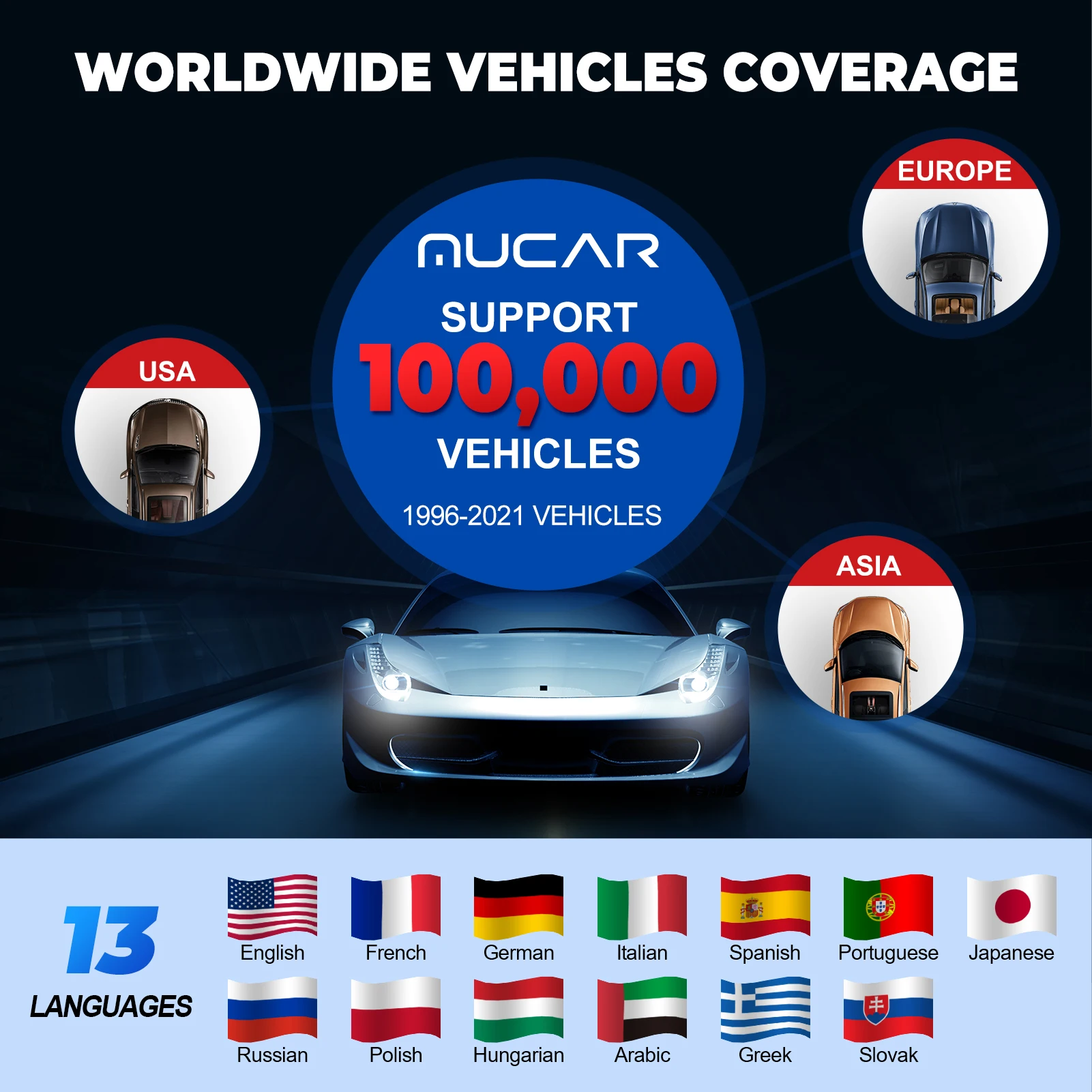 100000 + покрытие транспортных средств + 13 языков. Постоянные обновления для исправления ошибок, моделей автомобилей, новых функциональных возможностей и параметровСканер MUCAR CS4 OBD2 имеет широкое покрытие транспортного средства и совместим с 99% всех моделей автомобилей из США, Европы и Азии