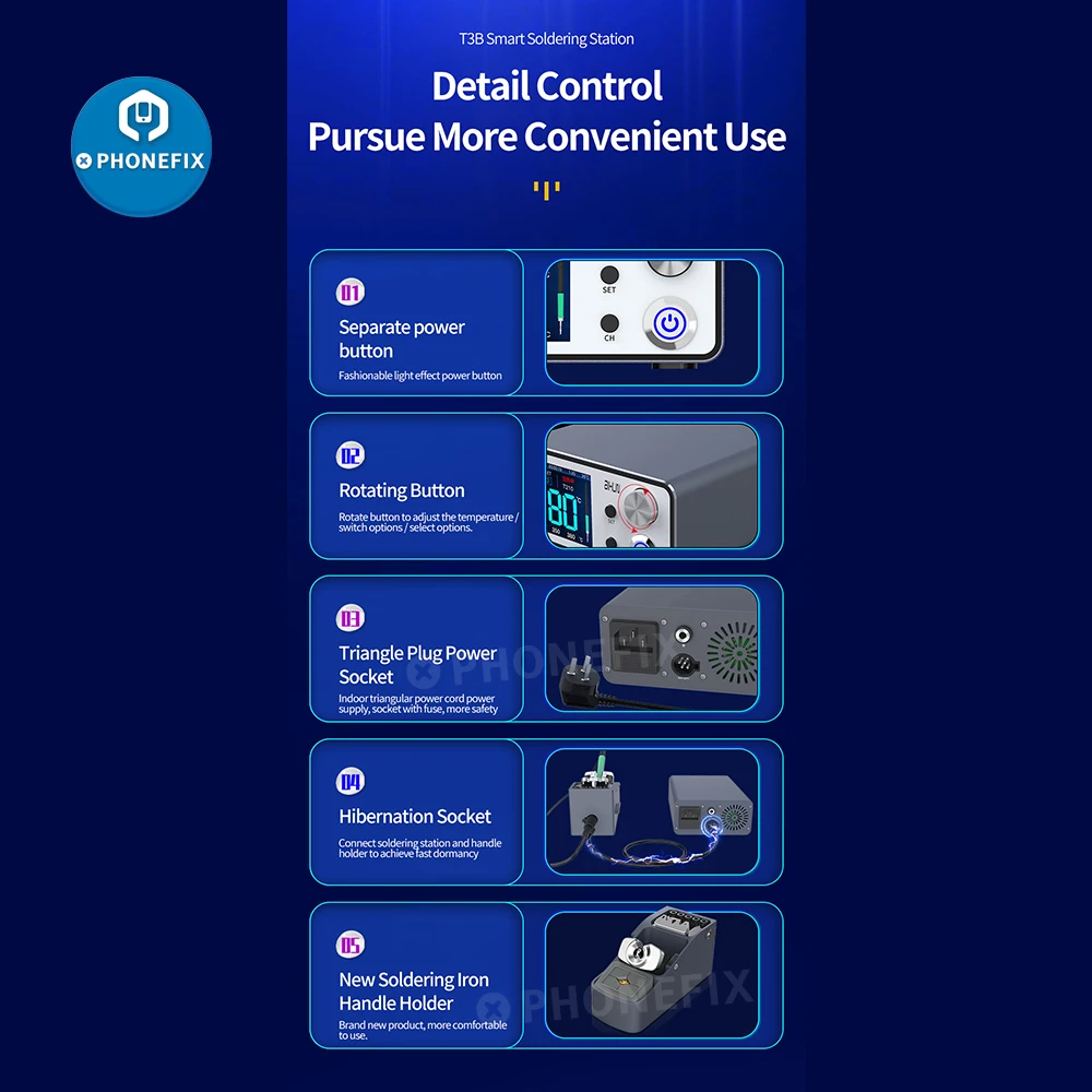 2. Принять 200 Вт Супер источник питания, только занимает 4 секунды для паяльника для повышения до 380 ℃.