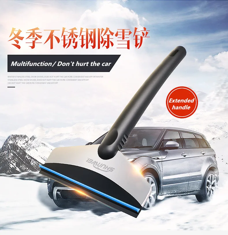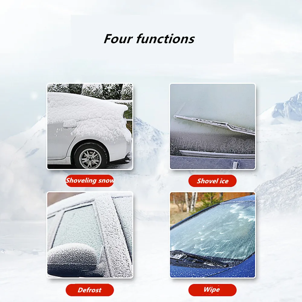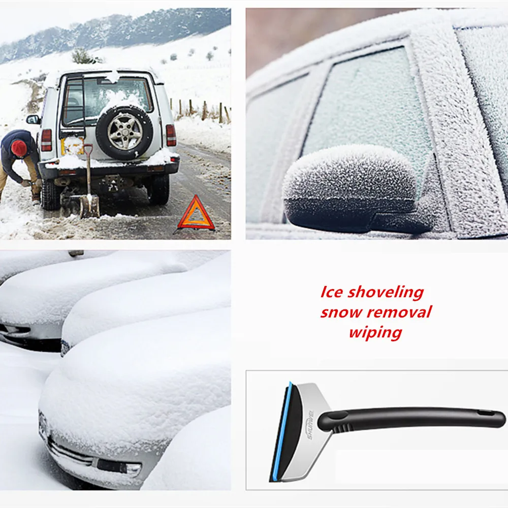 ● Есть мягкий скребок TPR на задней части, который может использоваться в качестве стеклоочистителя, или он может использоваться для очистки льда и снега на кузове автомобиля, не повреждая краску на поверхности кузова автомобиля