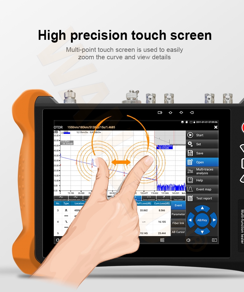 ● Поддержка создания отчетов об испытаниях, включая графики кривой траектории, настройки параметров, информацию о событиях из волокна и информацию о волоконных звеньях. Отчет сохранен в формате EXCEL, PDF или скриншотов и т. Д.
