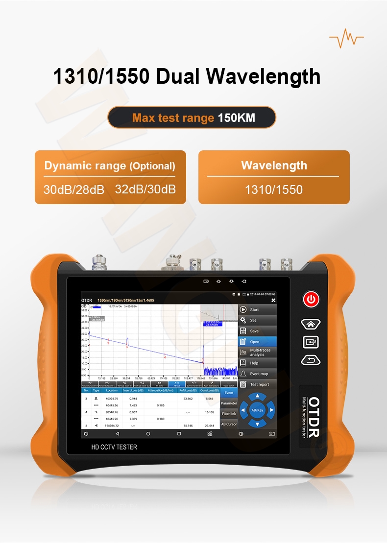 ● 1310/1550 двойная длина волны, максимальный диапазон испытаний 150км