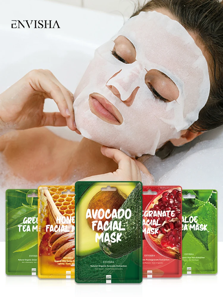 ENVISHA маска для лица Уход за кожей зеленый чай маска уход за лицом лист Маска Алоэ Вера анти акне витамин медовый увлажняющий уход за лицом