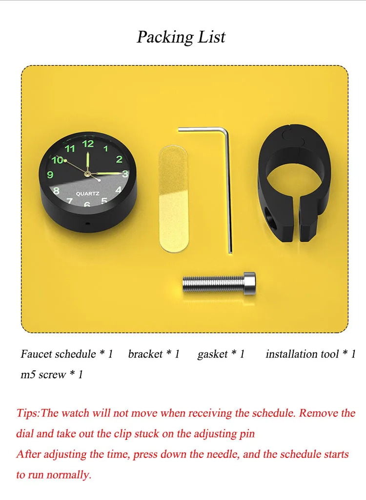 Caracteristicas: aluminio puro para criar alta vedaçao, à prova d'agua e luminosa devido à mudança de ambiente de luz, HA diferença de cor entre a cor do produo real. Consulte o produto real. Obrigado por explicar que o relógio Nao receber a programaçao. Remova o dial e retement o clipe preso no pino de ajuste após ajustar a hora, pressione a agulha e a programaçao começa a funcionar normalmente.