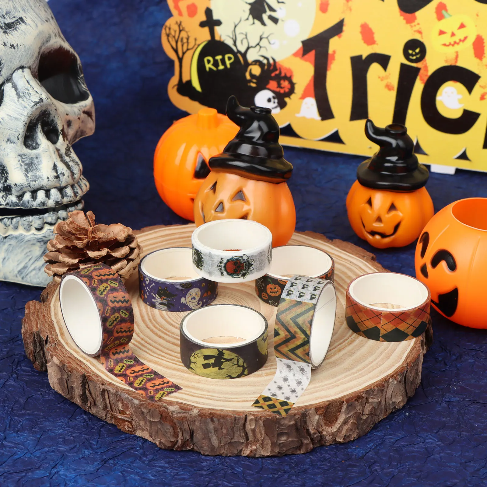 Идеальные предметы для Хэллоуина: Эта бумажная лента для Хэллоуина имеет сильную атмосферу Хэллоуина и может использоваться для украшения подарков, карт на Хэллоуин, скрапбуков, чехлов на мобильный телефон и фоторамок. Это также хороший подарок для детей и друзей во время Хэллоуина.