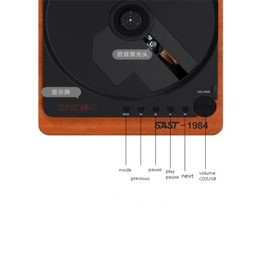 1. Древесина зерна, без потерь hifi портативный CD-плеер,