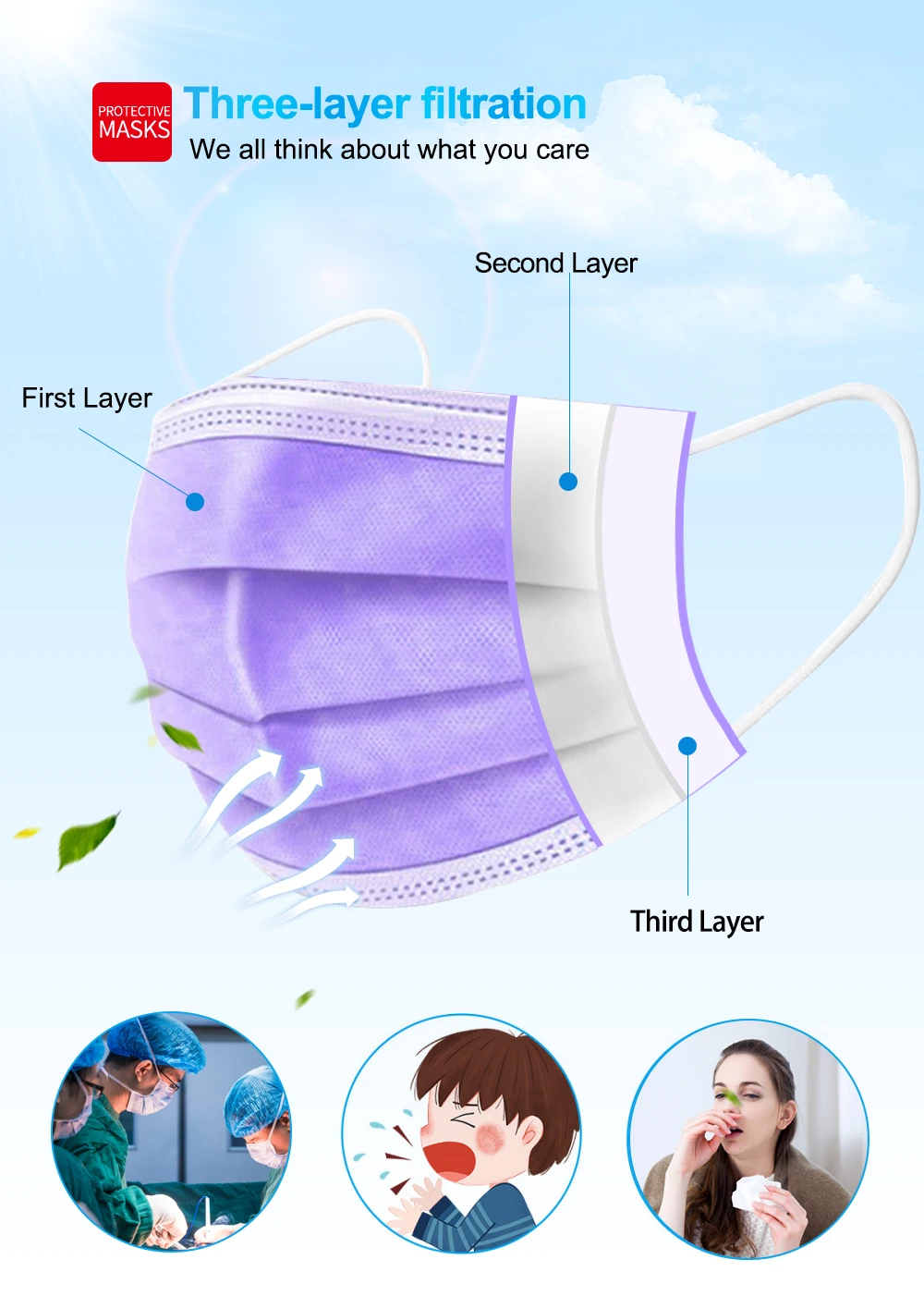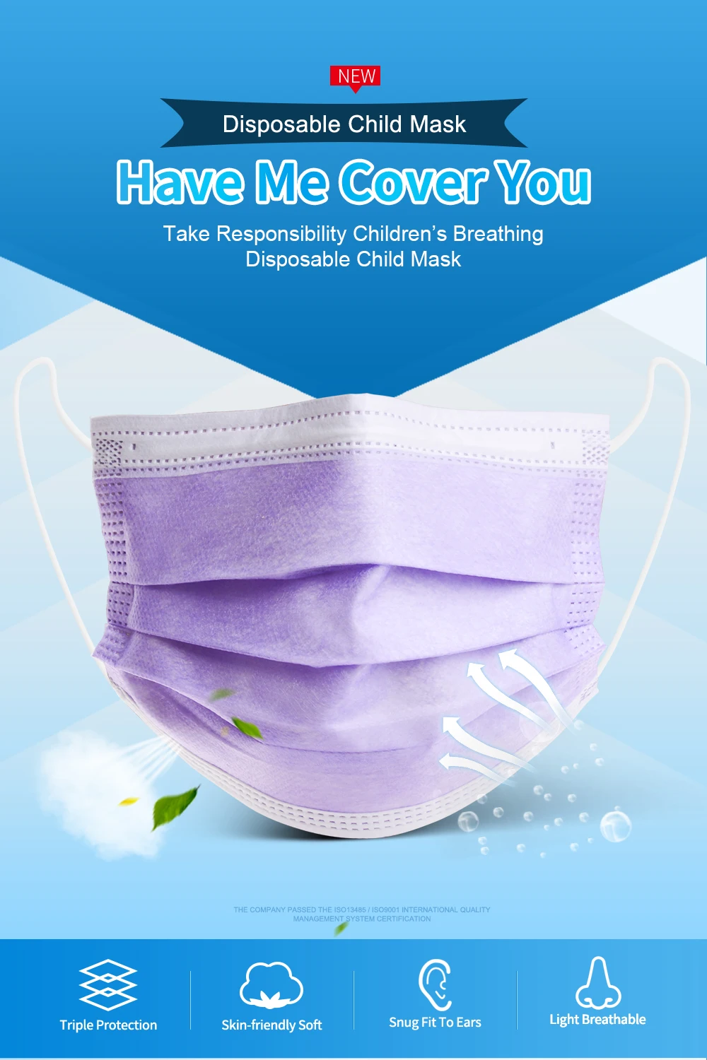 Детские одноразовые маски гражданского 3-х слойная детская ежедневная маска