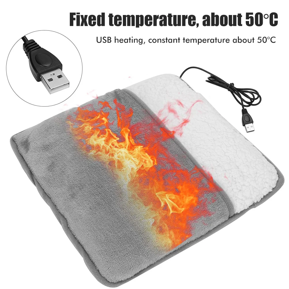Winter USB Foot Warmer Built-in Heater Fast Heating Safe Start Warm Foot Cover Feet Heating Pad Warmer Massager Washable