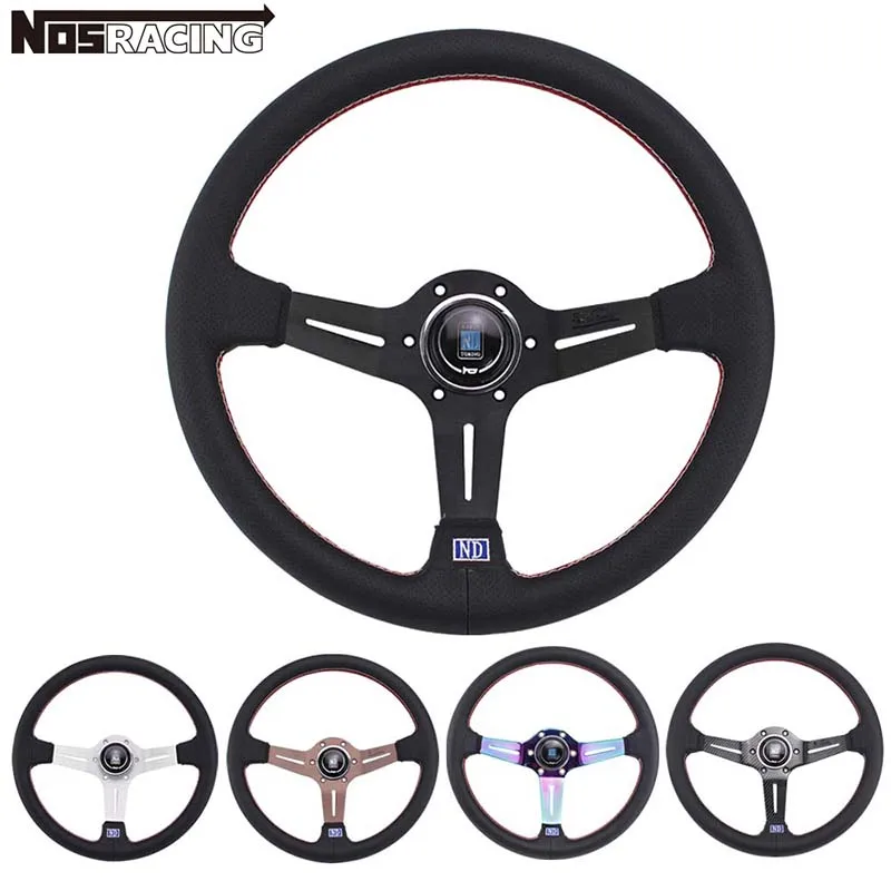 ND рулевое колесо с кожаной оплеткой JDM Универсальный 14 дюймов 350 мм гоночный автомобиль глубокая Кукуруза дрейфующий Спорт тюнинг Volante имитация PC Авто игра