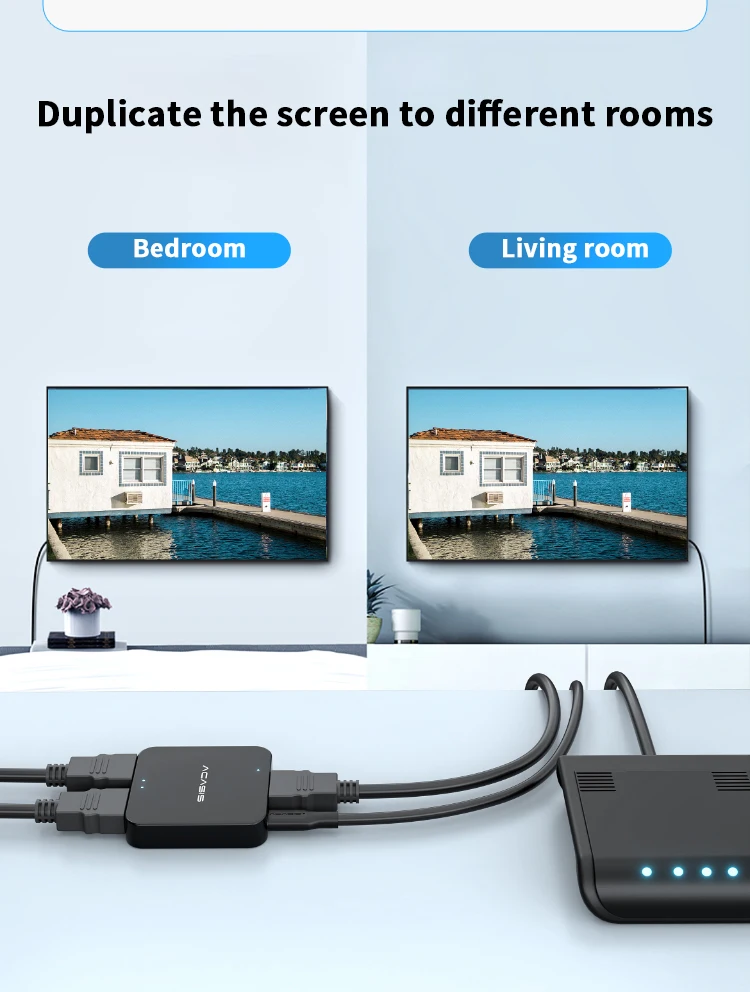 ✔Простое управление подключением и воспроизведением-этот HDMI сплиттер прост в настройке и эксплуатации. Просто подключите устройства HDMI и usb-кабель зарядного устройства (✅Не поставляется с адаптером), чтобы наслаждаться. Идеально подходит для выставки, конференц-зала, постельных принадлежностей, гостиной, кухни и заднего двора.