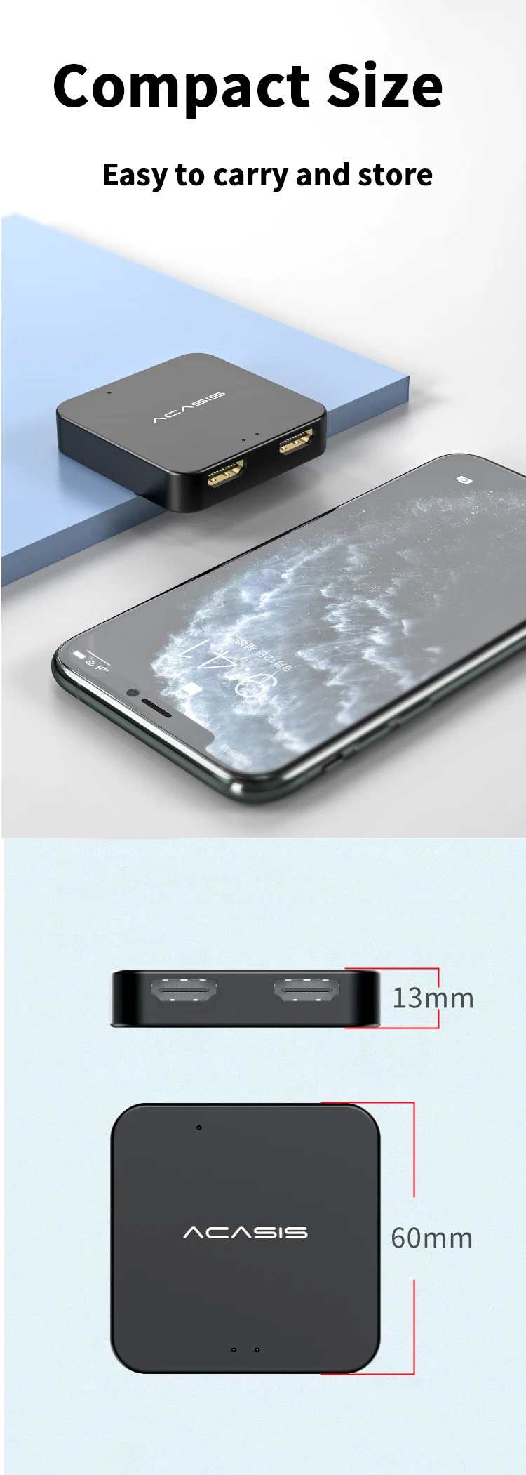✔HDMI сплиттер 1 в 2 из алюминиевого HDMI сплиттер распределяет аудио-и видеосигнал с одного источника на два HDMI дисплея одновременно, и создает впечатляющие презентации высокой четкости. Без лагов, без вспышки или падения разрешения.✅Пожалуйста, убедитесь, что разрешение обоих выходных устройств одинаковое, чтобы обеспечить нормальную работу.