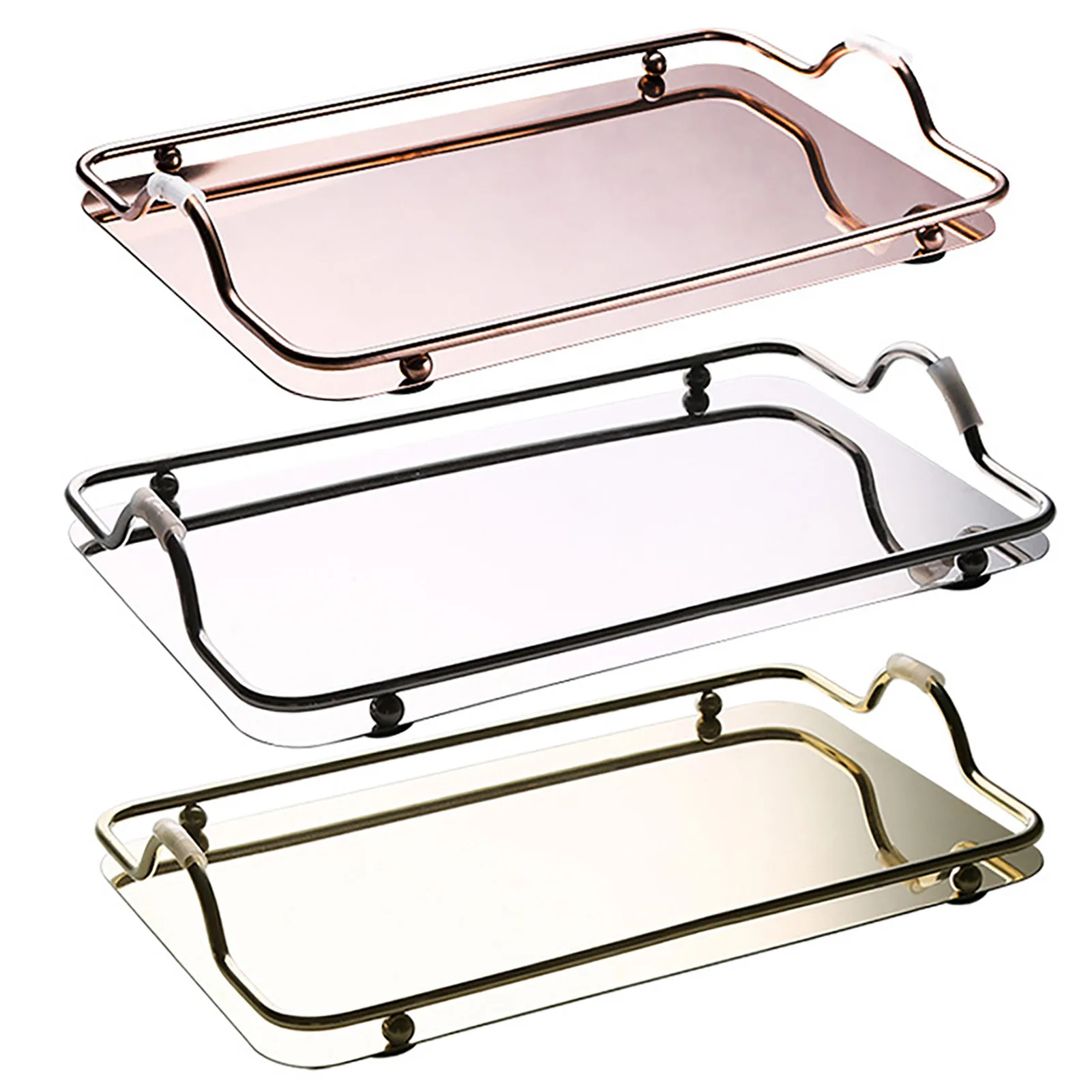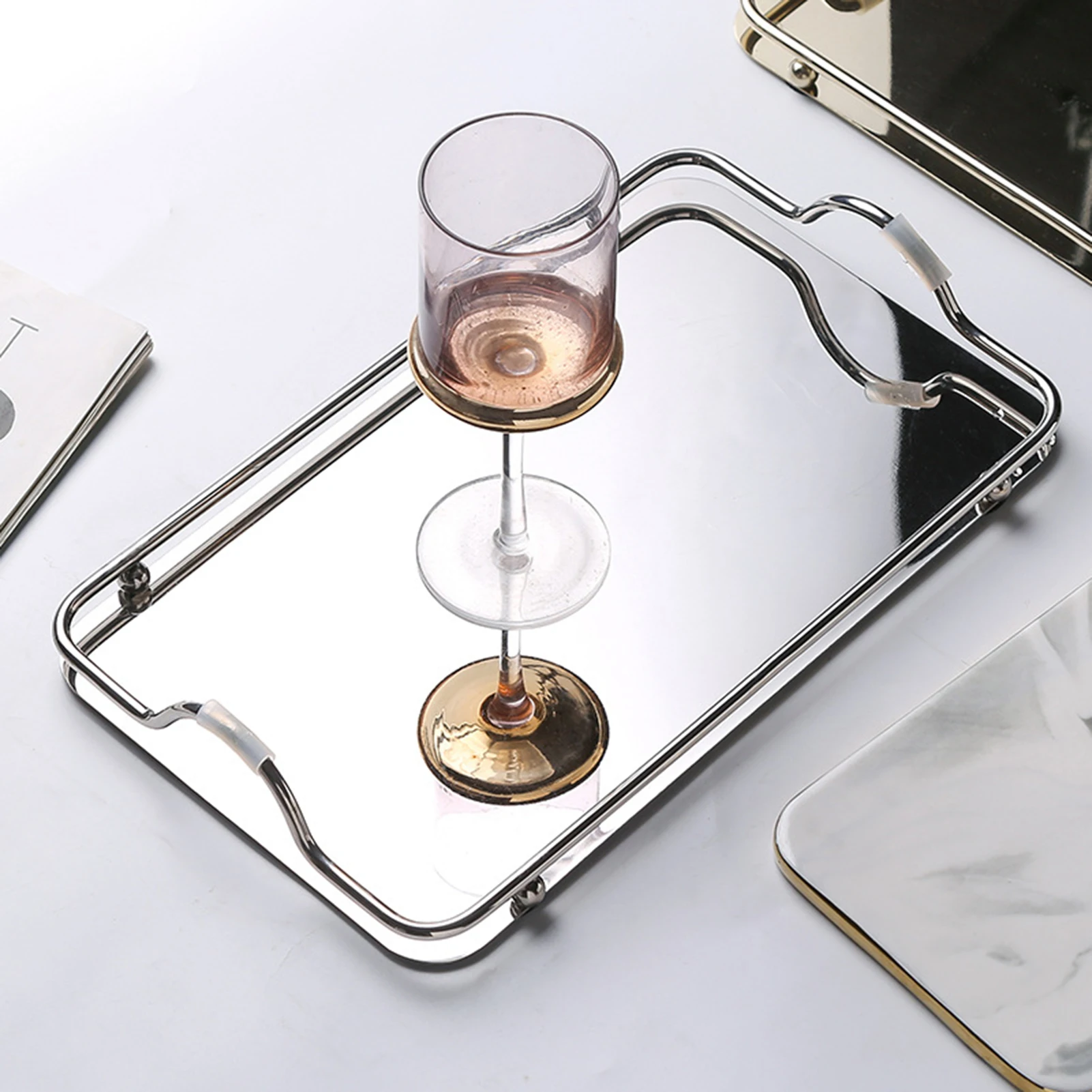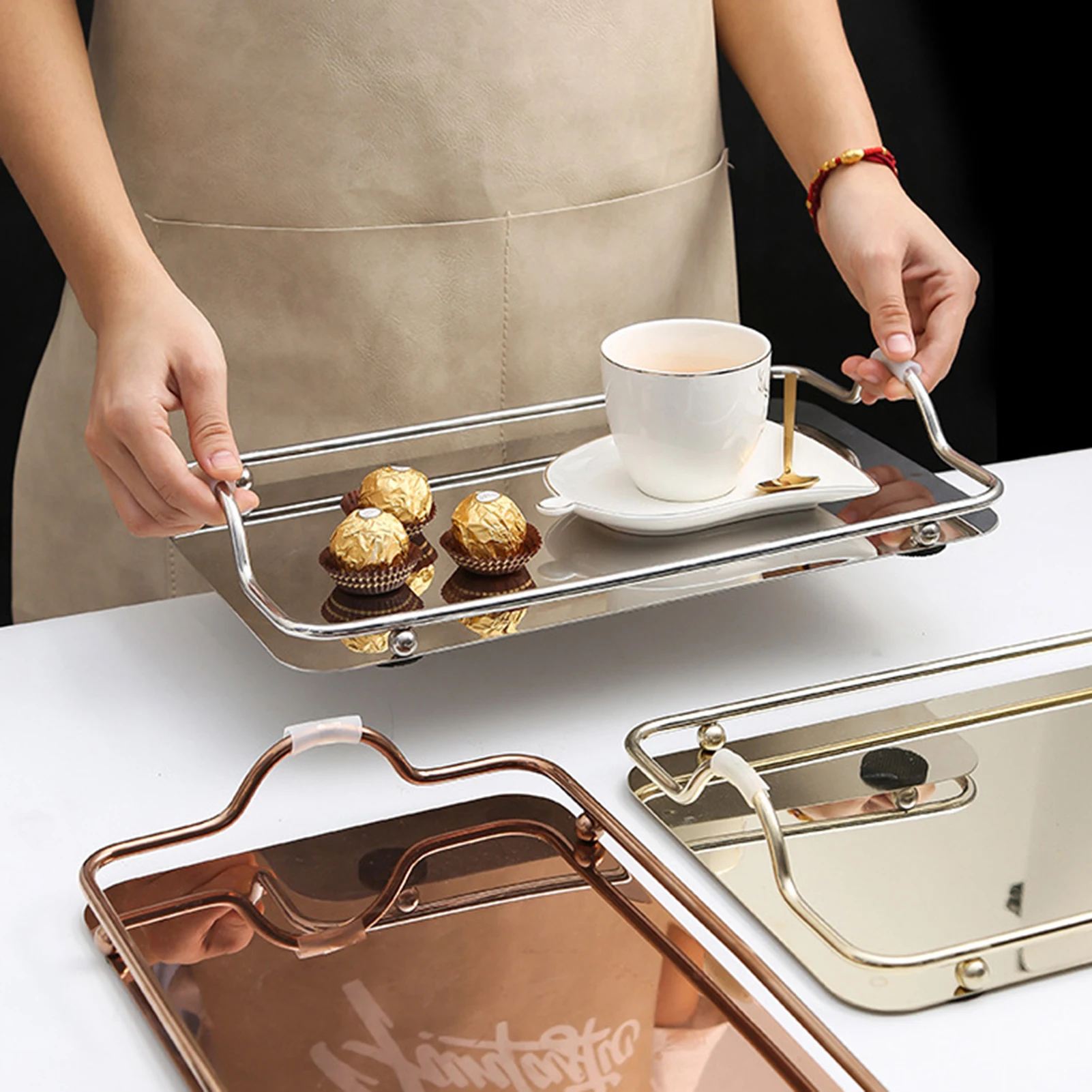 Большой прямоугольный поднос с ручкой, золотые/серебряные поддоны, декоративный роскошный поднос для чая, декор журнального столика