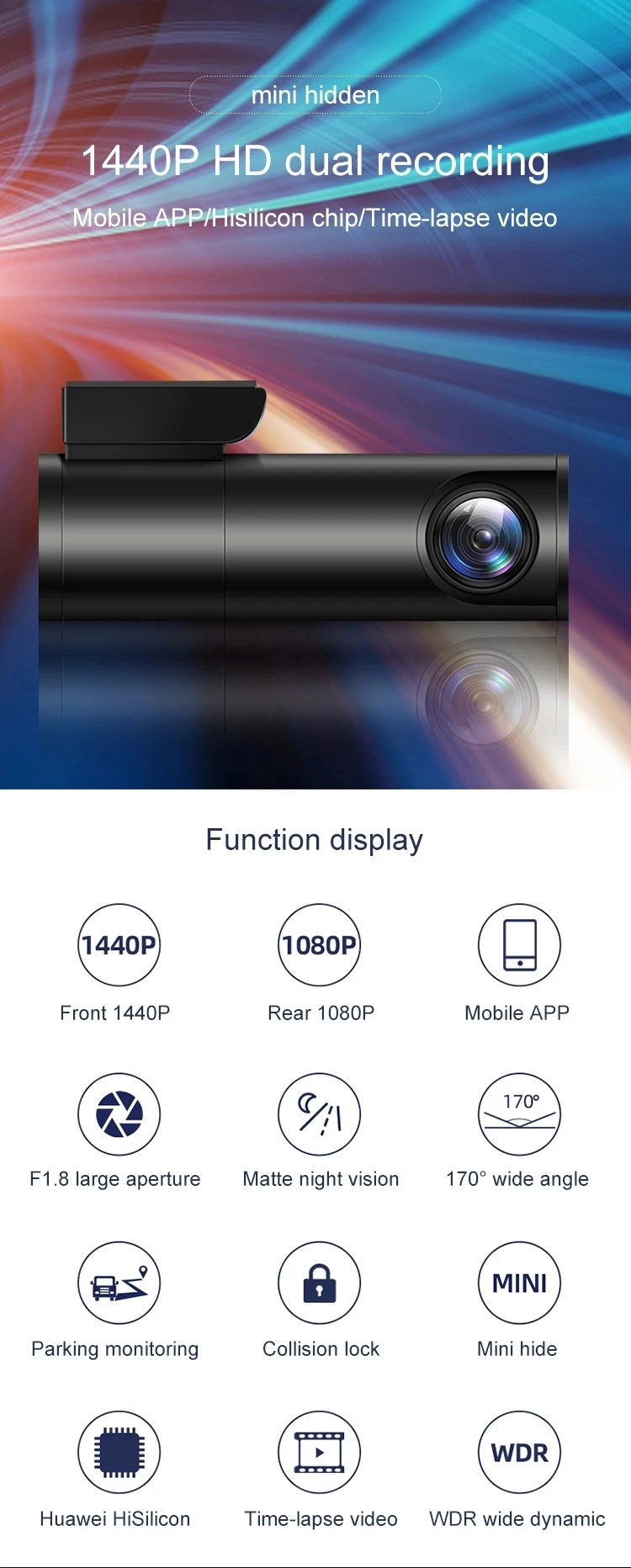 Батарея: нет Формат видео: AVI Формат видео: MOV Формат видео: Mp4 пиксели: 1200Mega соотношение экрана: Нет Сенсорный экран: нет Размер дисплея: <3 "Задняя камера: Да интерфейс: AV-In дисплей: LCD Максимальная Внешняя память: 128G Видео Код: AVC Название модели: Видеорегистратор с двумя камарами, wifi, камера для автомобиля разрешение: 1440*1080 Обнаружение движения: Поддержка автомобильного видеорегистратора особенность: циклическая запись, g-сенсор, монитор парковки автомобиля: поддержка, нужно купить комплект hardwire