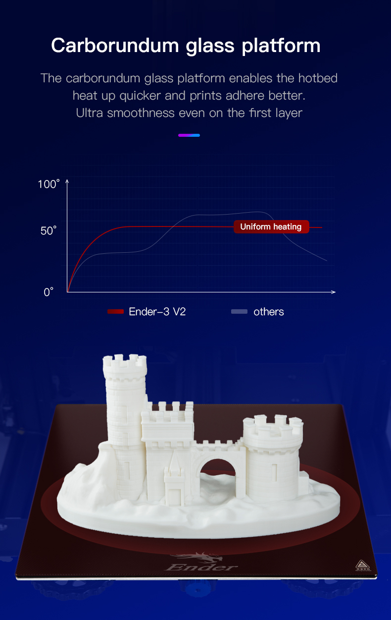Стеклянная платформа carborundum позволяет горячей кровати нагреваться быстрее и печать прилипает лучше. Ультра гладкость