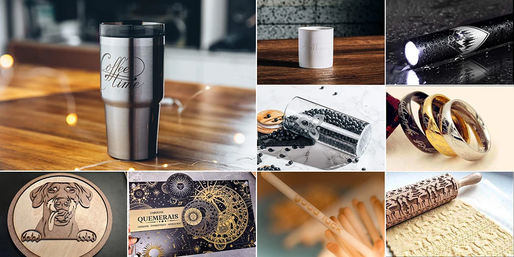 Может быть оснащен вращающимся валом, легко поворачивается на 360 °, чтобы выгравировать цилиндр.