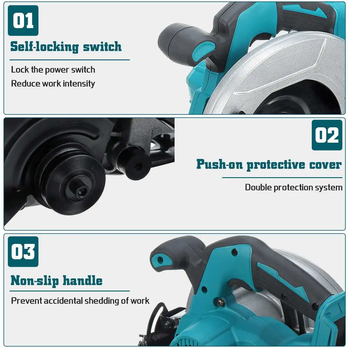 -Циркулярная пила имеет двигатель с высоким крутящим моментом и компактную конструкцию для широкого спектра применений резки, и будет резать 2X материал при 45 градусах.