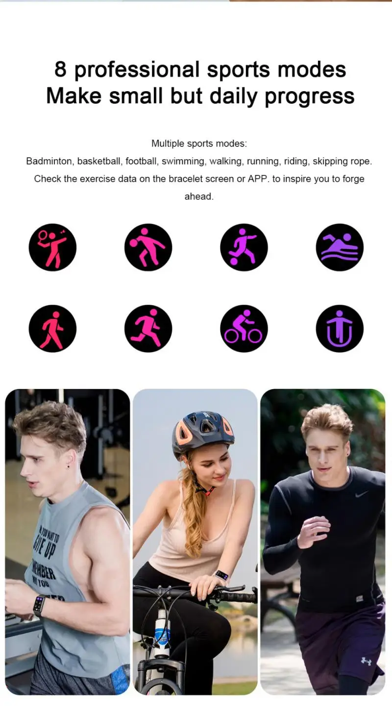 Этот браслет использует технологию датчика ускорения SC7A20, которая может точно измерить частоту сердечных сокращений, а также измерить частоту сердечных сокращений в состоянии физических упражнений, чтобы избавиться от ограничений пульса.