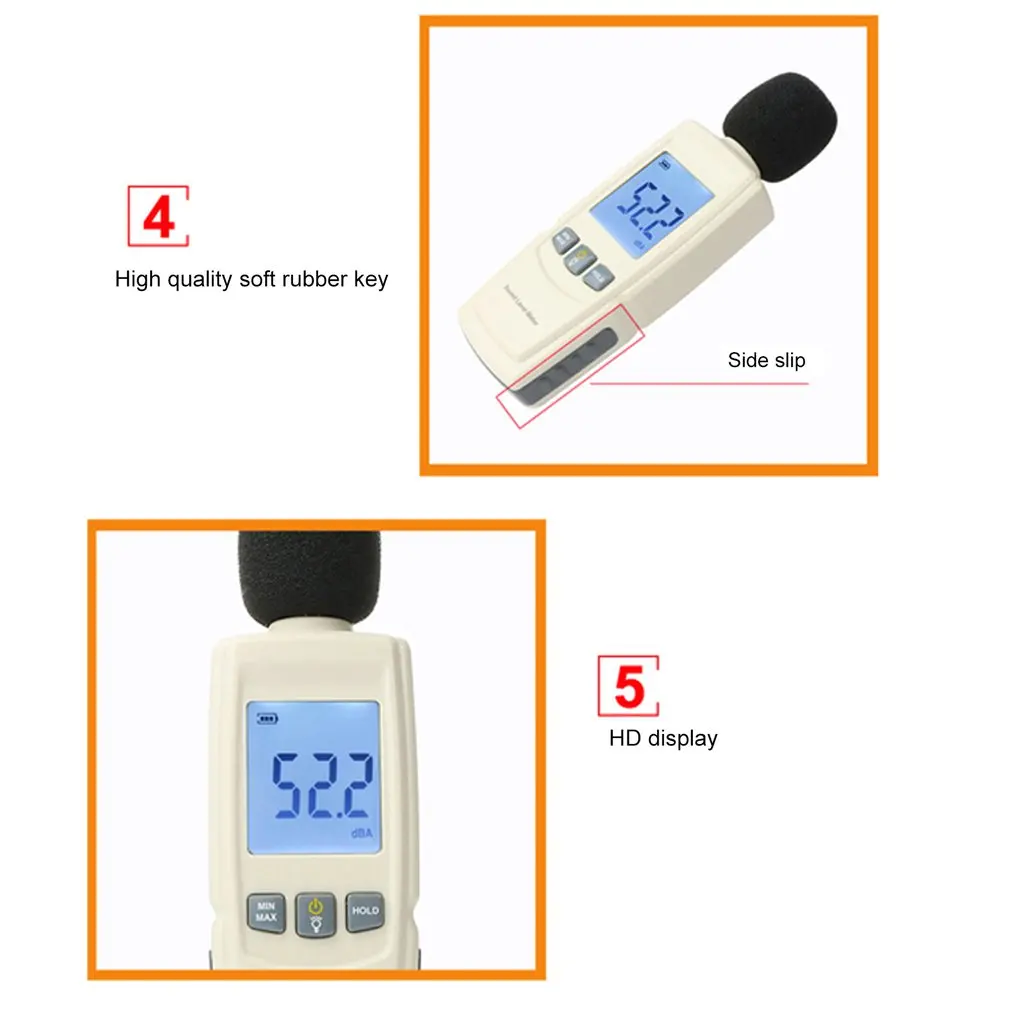 Этот измеритель уровня звука очень маленький и светильник. Это идеальный инструмент для измерения уровня звукового давления в децибелах (дБ).