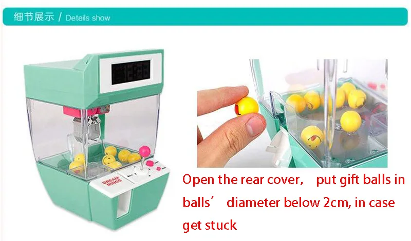 Режим игры:Нажмите любую клавишу, чтобы сделать светильник дисплея, затем Бросьте монету в слот для монет и перемещайте джойстик вверх, вниз, влево и вправо, поместите крючок и нажмите кнопку «вниз», чтобы сделать крючок маленьким подарком. После захвата маленького подарка, никаких действий не требуется, крючок автоматически вернется, и маленький подарок будет отправлен на выход подарка.
