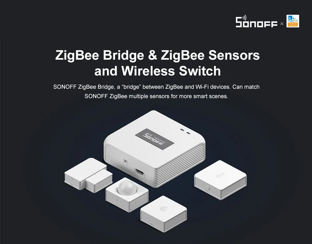 5.SONOFF ZBBridgeЯвляетсяПоддержка подустройств: BASICZBR3 Smart Switch, S31 Lite zb Smart Plug, SNZB-01 беспроводной переключатель (скоро), SNZB-02 Temp. И ГУМ. Датчик (скоро), SNZB-03 датчик движения (скоро), SNZB-04 беспроводной датчик двери/окна (скоро)