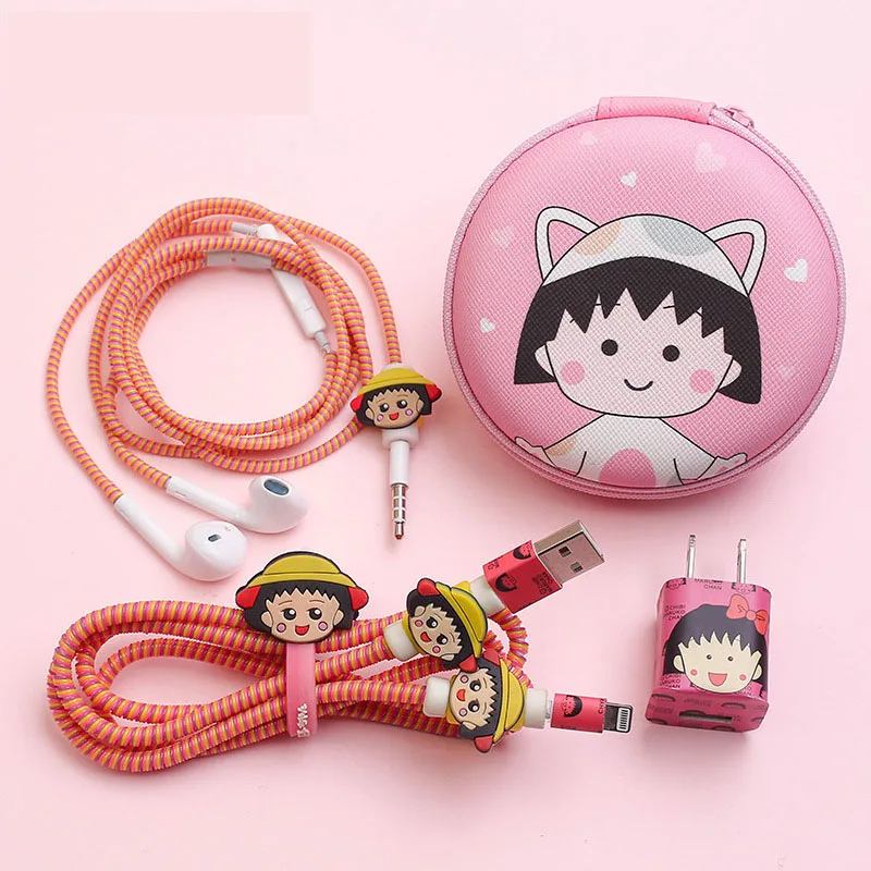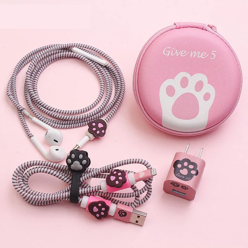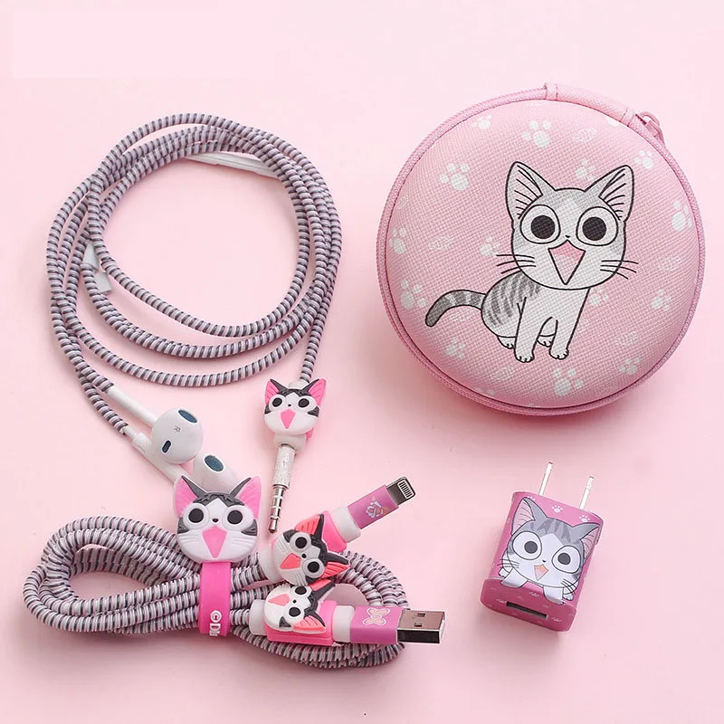 Круглая сумка для наушников, набор протекторов для наушников с usb-зарядным устройством, спиральная защита кабеля для iphone 5 6 7 8 X