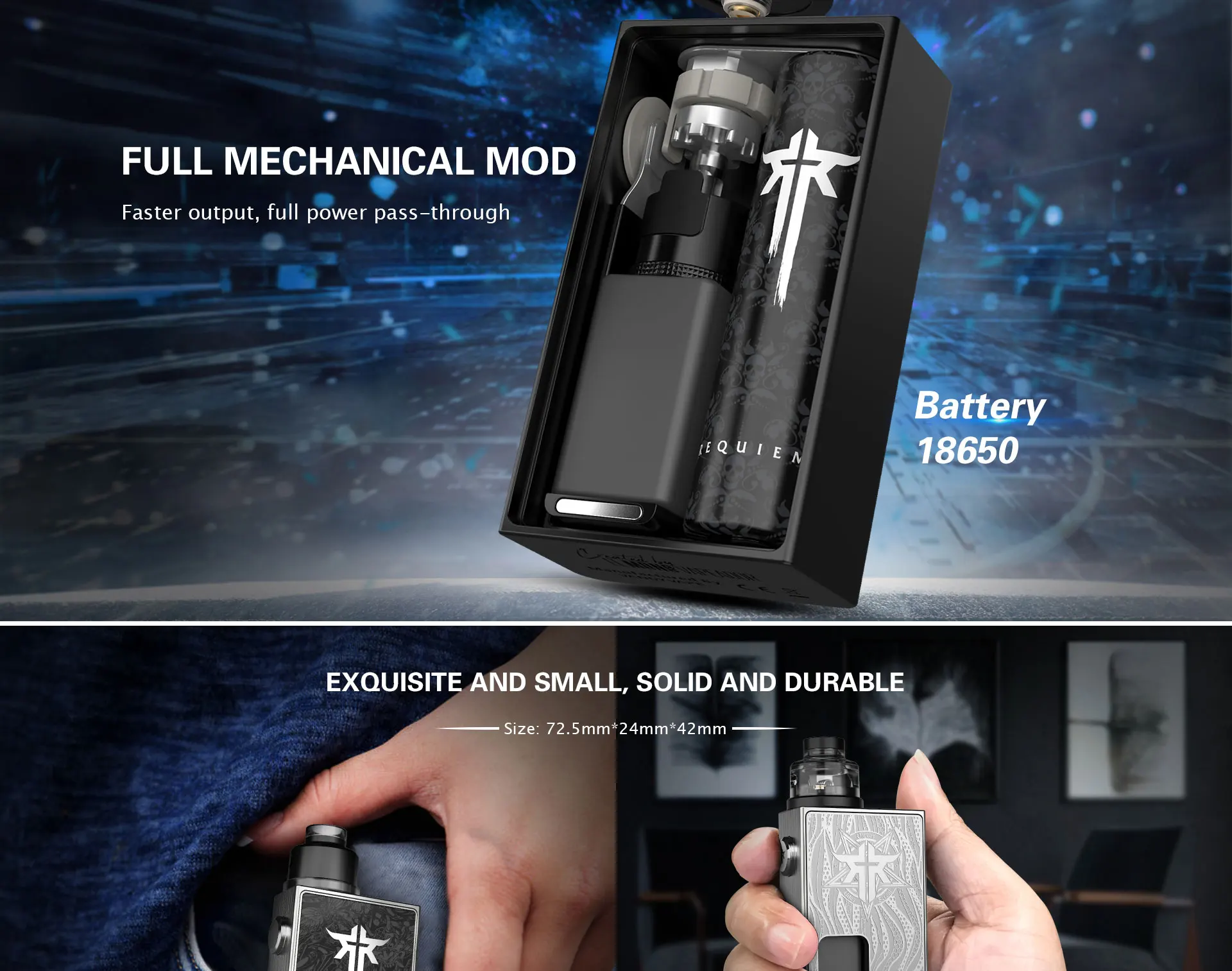 2. Полностью механический мод, одна батарея 18650