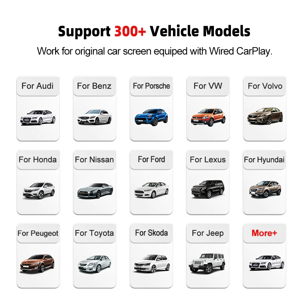 🚘【Проводной для беспроводной CarPlay, беспроводной Android Auto】Этот адаптер CarPlay может конвертировать проводное соединение вашего завода в беспроводное соединение. После подключения этой беспроводной коробки CarPlay AI вы можете наслаждаться автоматическим и беспроводным подключением к CarPlay/Andrroid Auto без кабеля передачи данных. Избавьтесь от проблем с кабелем. Самый простой способ принести беспроводной CarPlay & Andrroid авто к вашему автомобилю.