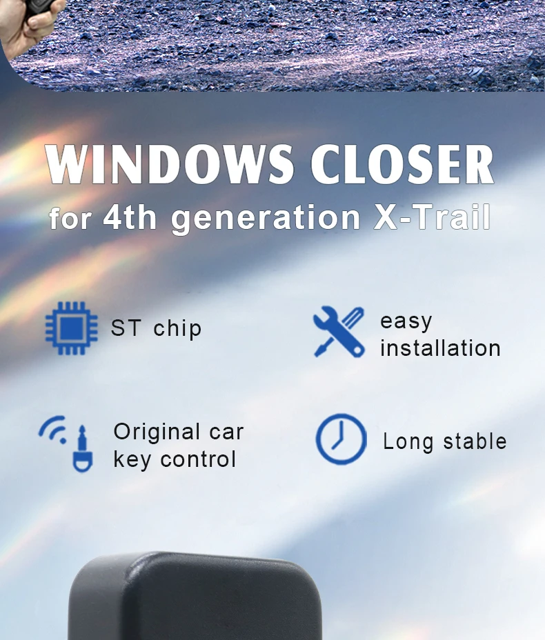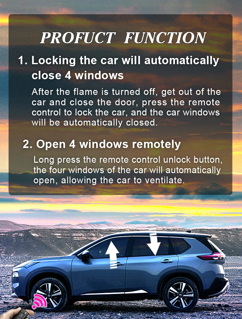 Удерживайте кнопку разблокировки пульта дистанционного управления, четыре окна автомобиля автоматически открываются, что позволяет машине проветриваться.