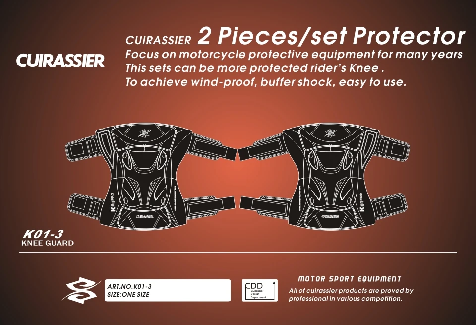 CuirassierK01/E01/K01-2/E01-2/K01-3 Knee(Elbow)braces suitable for protecting knees, like riding Motorbike/Motocross, Biking & Cycling, MTB, Skiing, Snowboarding, Wakeboarding, Football, Volleyball, Wrestling, Dodgeball, Paintball, Softball, Tactical, Hockey, Weightlifting, Workout, Cross-fit, Skating, Kickboxing, Martial Art, Jujitsu, Hunting and more.