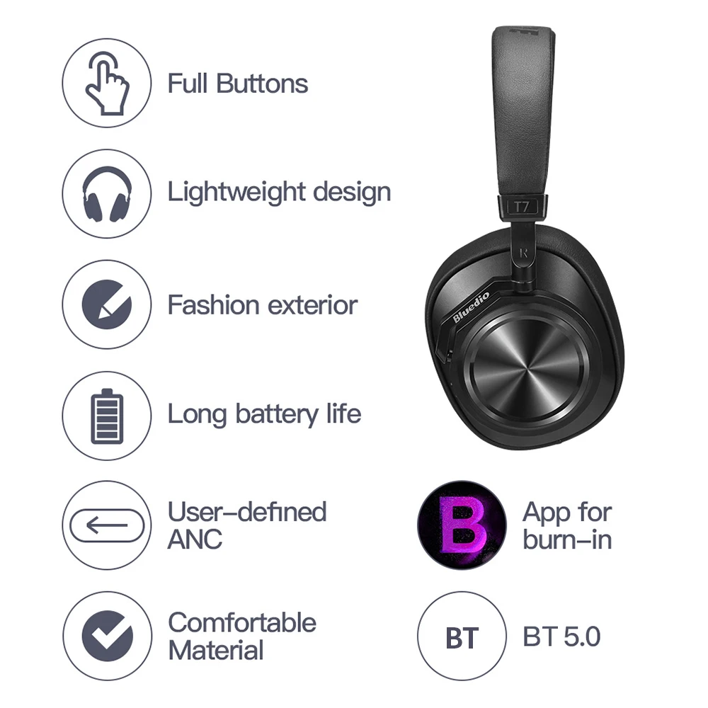 Bluedio T7 + беспроводная BT гарнитура с активным шумоподавлением, гарнитура с распознаванием лица, слот для sd-карты, пошаговые счетные черные наушники
